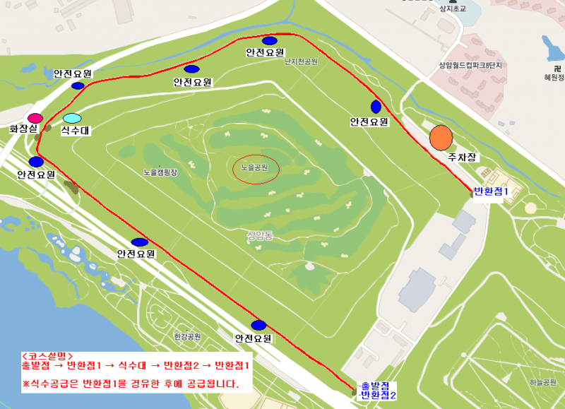 우천 관계로 예정코스 침수로 장소 변경 됨.